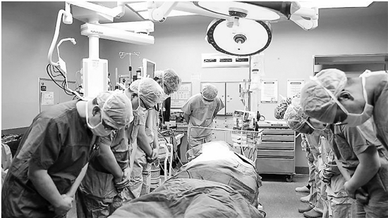 胡穎紅說(shuō),一個(gè)患者腦死亡后,心臟、雙腎、肝、眼角膜等器官及組織如維護(hù)良好,在患者及家屬完全自愿前提下,就可以行器官捐獻(xiàn)移植。生命輪回切換,當(dāng)醫(yī)護(hù)人員在陸繼春遺體前鞠躬默哀,隔壁,“手術(shù)中”紅燈亮起,受體進(jìn)入麻醉狀態(tài),一切都準(zhǔn)備就緒。