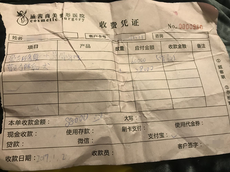 整容消費(fèi)收據(jù) 受訪(fǎng)者供圖