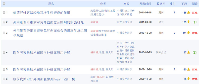 中新經(jīng)緯記者在盛某的個(gè)人簡(jiǎn)介中看到,其自稱(chēng)畢業(yè)于南方醫(yī)科大學(xué)(原中國(guó)人民解放軍第一軍事醫(yī)科大學(xué))整形美容外科專(zhuān)業(yè),醫(yī)學(xué)博士(PHD),臨床醫(yī)學(xué)美容系科班出身,發(fā)表中外論文十余篇。然而,在中國(guó)知網(wǎng)查詢(xún)后只看到6篇與盛某有關(guān)的論文,時(shí)間跨度在2009-2011年三年間,且只標(biāo)注是碩士論文,并未見(jiàn)到博士論文。同時(shí),中新經(jīng)緯記者在南方醫(yī)科大學(xué)博士招生網(wǎng)站看到,在近年的博士招生目錄中,也并未有“美容系”或“整形美容專(zhuān)業(yè)”,僅有的類(lèi)似專(zhuān)業(yè)也只是外科學(xué)專(zhuān)業(yè)的整形方向。
