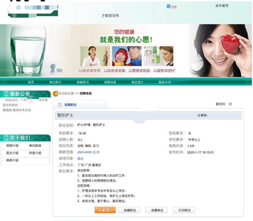 中新經(jīng)緯客戶(hù)端通過(guò)衛(wèi)健委醫(yī)生執(zhí)業(yè)注冊(cè)信息查詢(xún)后發(fā)現(xiàn),盛某并未在廣州盛某醫(yī)療美容診所持有執(zhí)業(yè)醫(yī)生證書(shū)。而在這家診所的官網(wǎng)上,卻依舊介紹自己為微整機(jī)構(gòu),并在招聘整形護(hù)士。