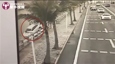 記者在這段視頻上看到,3月18日下午6點多,一輛白色小轎車行駛至珠海市情侶中路時,先是沿著白色的實線行駛,歪歪斜斜地行駛一段后,在海邊一處供行人休憩的親水亭臺邊停了下來。約幾秒鐘后,該白色車輛突然啟動,越過路牙,從親水亭臺的入口駛入,并順著靠海的臺階直沖下海。