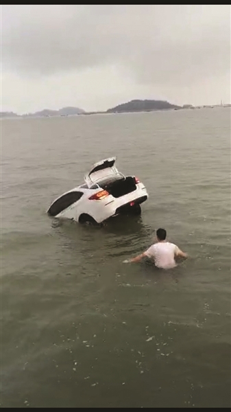 “我當時開車送一個朋友回家,車上還有我8歲的兒子。我在馬路的對面,親眼看到了這輛車由靜止到突然加速沖下海,于是立即到前方調頭過來,和朋友帶兒子一起趕過去了。”陳志成對紫牛新聞記者說,這段流傳到網上的視頻就是朋友拍下的,當時圍觀的有幾十人,不少人打電話報警求助。