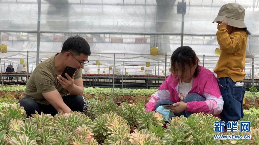 大棚一角,李小鵬和妻子正在為“粉絲”直播多肉生長情況。不到十歲的女兒在花叢里跑來跑去,成了直播里最活潑的背景。“直播一整天,能帶動兩三千元銷售,很多顧客成了我們的‘鐵粉’。”李小鵬邊說邊給花盆貼標簽,標簽上寫著網友的ID。