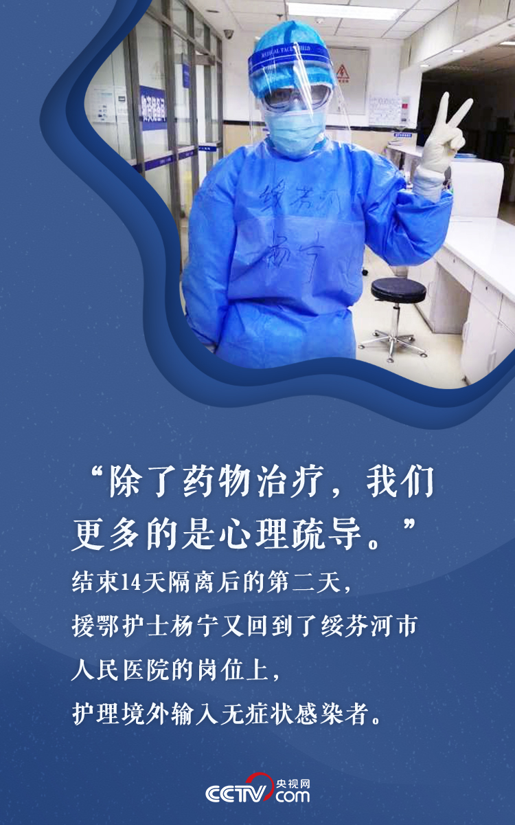央視網(wǎng)消息:5月12日是國(guó)際護(hù)士節(jié)。新冠肺炎疫情發(fā)生后,廣大護(hù)士英勇無畏沖向疫情防控斗爭(zhēng)第一線,冒著被感染的風(fēng)險(xiǎn)提供高難度專科護(hù)理,憑著仁愛之心撫慰患者內(nèi)心的焦慮恐懼。在這個(gè)專屬節(jié)日,一起為白衣天使點(diǎn)贊,謝謝你們?yōu)榇蠹移催^命!