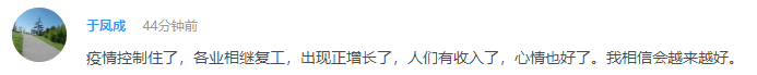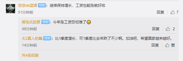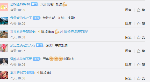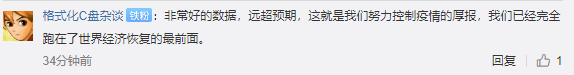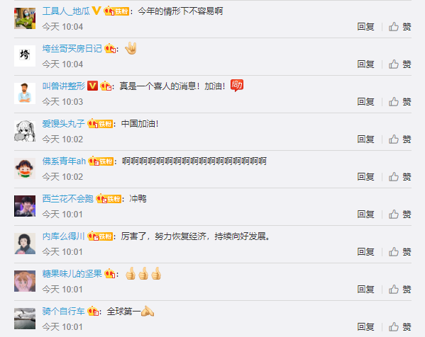 網友表示,數據表明中國經濟打不垮,有很強的韌性和戰略縱深。也有細心的網友反映,最近市場繁榮不少,發現公路上拉煤車,拉貨車不少。還有網友說,疫情控制住了,各業相繼復工,出現正增長了,人們有收入了,心情也好了。我相信會越來越好。