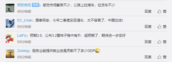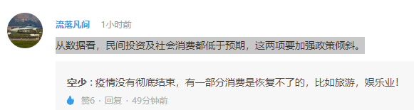 有網友建議,經濟尚未完全恢復,旅游業才起步,餐飲服務業經營恢復七、八成,產業鏈上下游還待對接。也有網友說,從數據看,民間投資及社會消費都低于預期,這兩項要加強政策傾斜。還有網友提出,GDP數據轉正后,希望進一步提高經濟發展的質量。