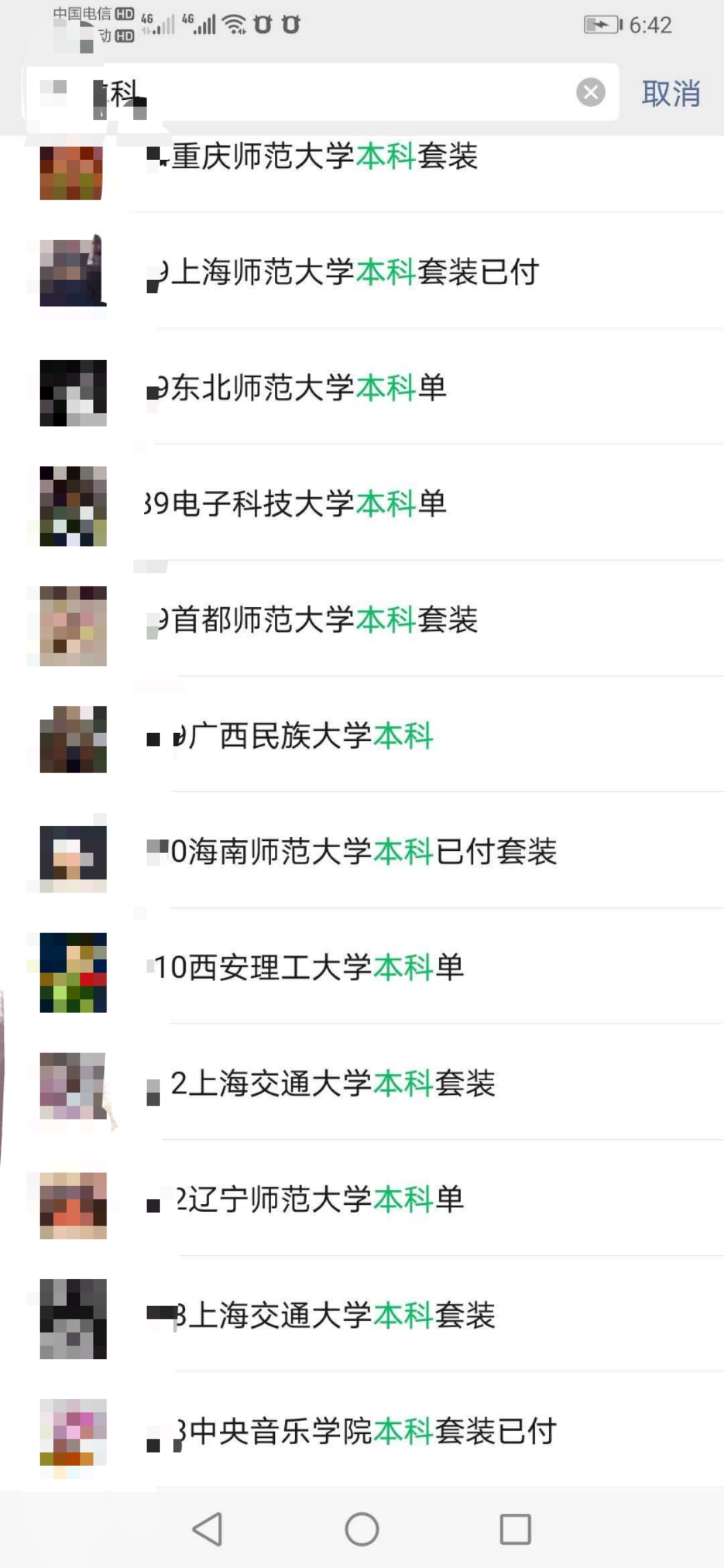 “一周左右收到貨,3-4天出電子版。”該賣家提供的名單顯示,其可定制包括重慶師范大學、上海師范大學、電子科技大學、中央音樂學院等幾十所高校的錄取通知書。