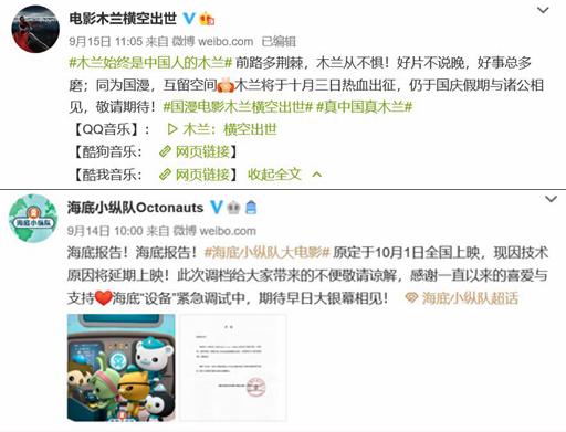 電影《木蘭:橫空出世》《海底小縱隊:火焰之環(huán)》宣布調(diào)檔。