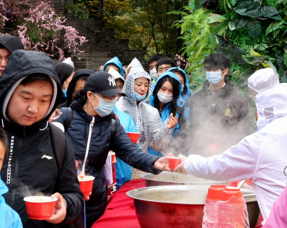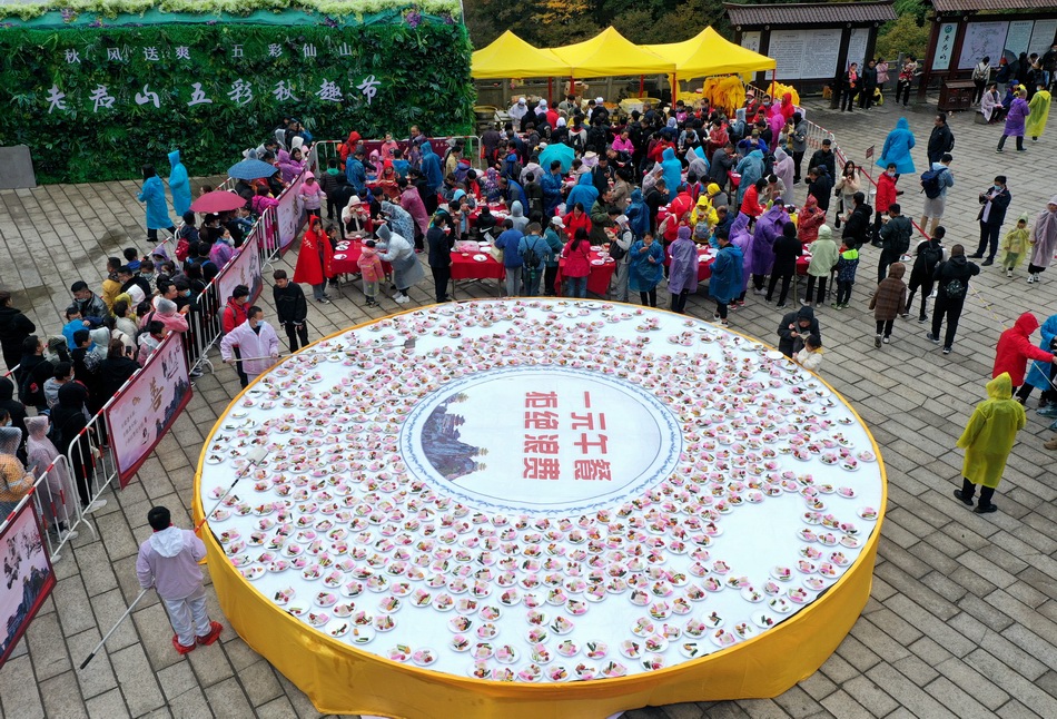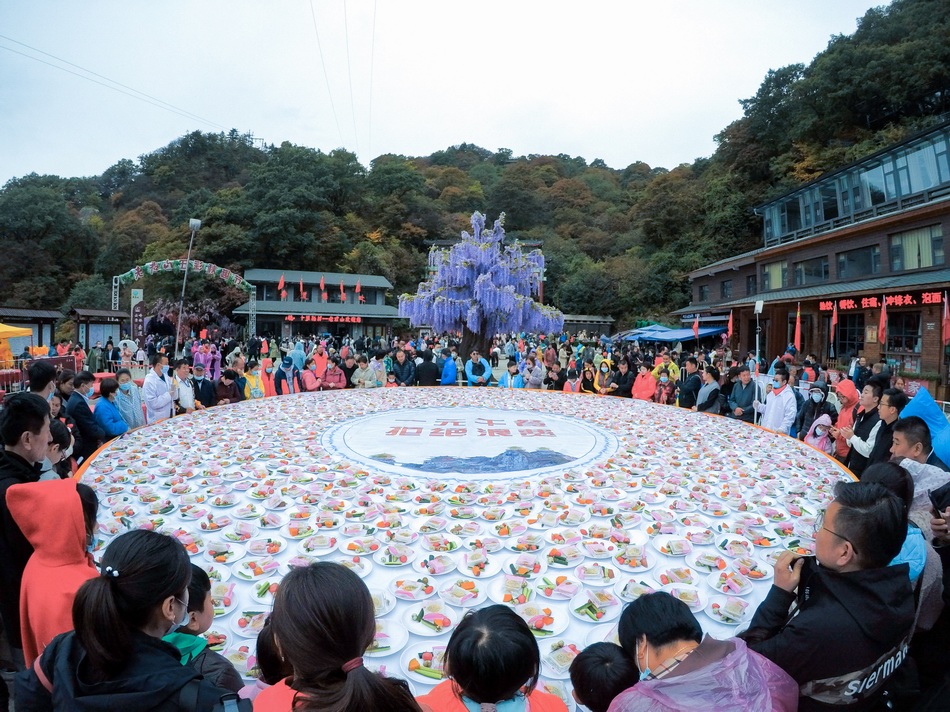 前述工作人員表示,在食物配置上,今年主食依然為當地特色的玉米糊涂面,并有黃瓜段、圣女果、鵪鶉蛋等配餐,因為今年國慶假期恰逢中秋,景區(qū)又特意贈送一塊月餅。食物設置了不同的份量,饅頭分大小饅頭、主食面條也有一份和半份之分,一份為750克,半份為500克,個人適量自取,避免浪費。