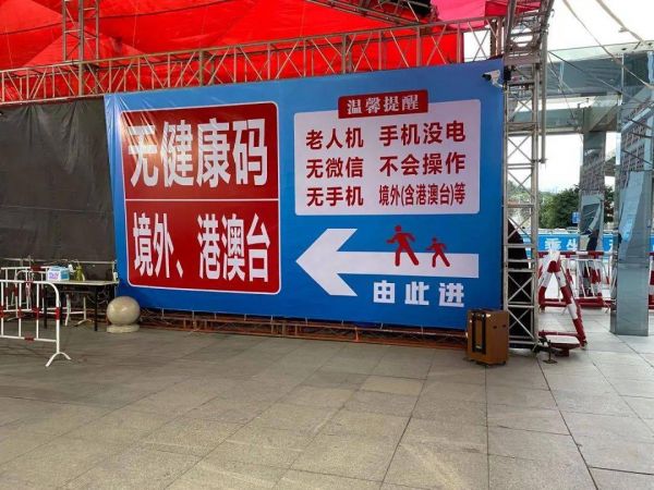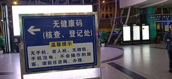 針對老人機、無微信及手機沒電、不會操作、無健康碼等特殊人群,南昌站和南昌西站在出站口設置相關專用通道,并附溫馨提示。鄒嫻婧 攝