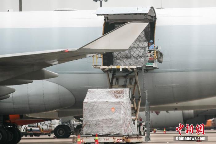 11月23日,上海浦東國際機場貨運停機坪,卸貨作業有序進行。 張亨偉 攝