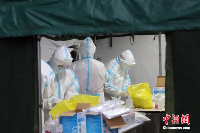 11月21日,受新冠肺炎疫情影響,天津市濱海新區對轄區內全體居民進行大規模核酸檢測篩查。圖為核酸檢測取樣現場忙碌的醫務工作者。 中新社記者 張道正 攝
