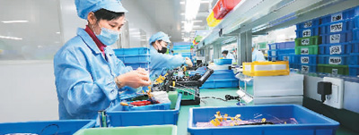 安徽省馬鞍山慈湖國家高新區安徽共芯光子科技有限公司的職工正在加工用于移動5G網絡的光通訊產品。