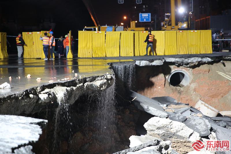 廈門呂厝路口塌陷現(xiàn)場正在處置 孫二偉 攝?