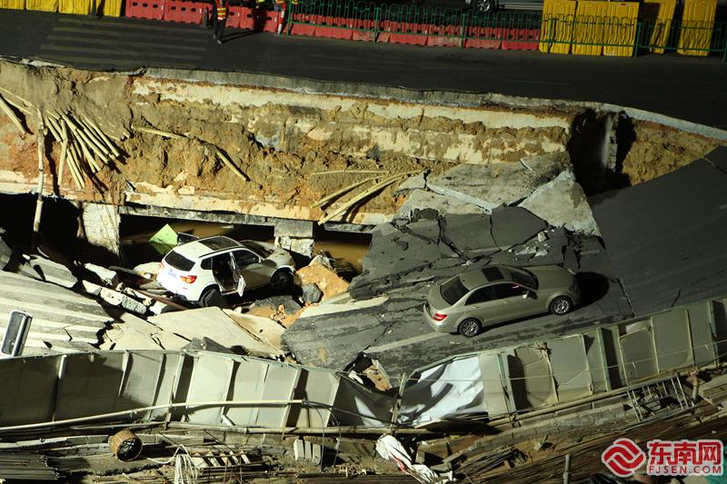 廈門呂厝路口塌陷現場正在處置 東南網記者 李霖 攝?