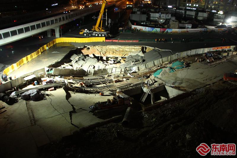 廈門呂厝路口塌陷現(xiàn)場正在處置 東南網(wǎng)記者 李霖 攝?