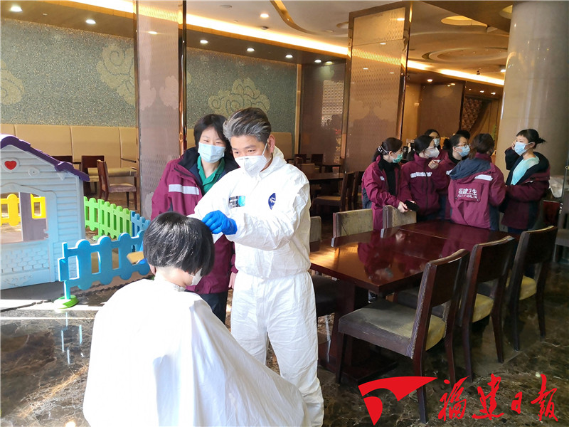 福建醫(yī)療隊(duì)員進(jìn)行隔離病區(qū)的防護(hù)培訓(xùn)。 采訪中康院長表示,福建醫(yī)療隊(duì)的工作要抓住三個(gè)重點(diǎn):①做好重癥病人的治療;②防止輕癥病人向重癥轉(zhuǎn)化;③盡力做到醫(yī)務(wù)人員零感染。“‘醫(yī)護(hù)人員零感染’是我們必須守住的底線。”賴碧濤和康德智動(dòng)情地說:“這些優(yōu)秀的醫(yī)護(hù)人員是健康活潑地跟著我們來的,我們就要把生龍活虎的他們帶回去。
