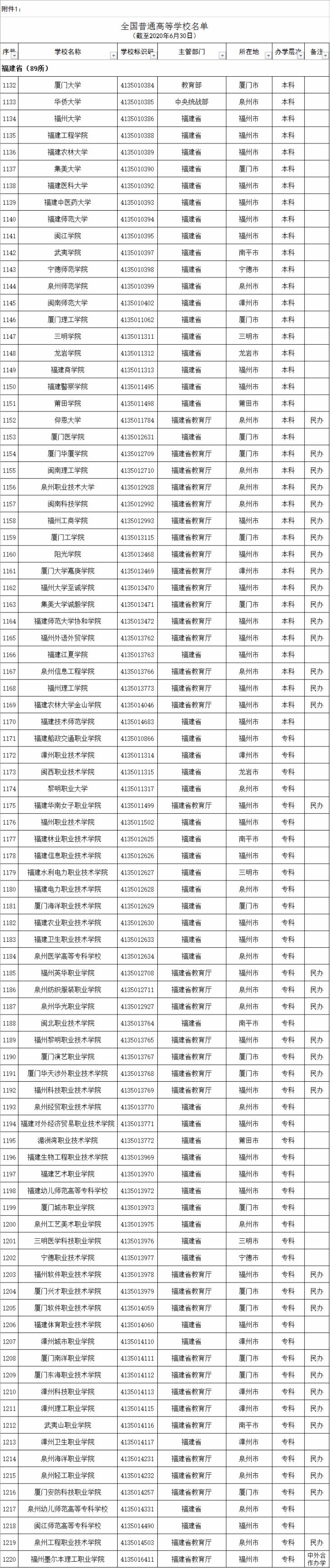 報考提醒!教育部發布2020全國高校名單,福建共92所