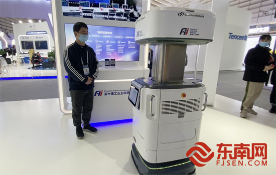 在富士康展區(qū),由一臺防疫消殺機器人正在向大家演示工作流程。該款移動復(fù)合消毒機器人以激光SLAM移動機器人為平臺,高度集成紫外照射、干霧發(fā)生及噴灑、過濾集塵殺菌等功能模塊,能快速有效地對室內(nèi)場景進(jìn)行復(fù)合消毒殺菌作業(yè)。機器人配備消毒任務(wù)管理系統(tǒng),可根據(jù)客戶實際消毒作業(yè)流程自定義消毒任務(wù),預(yù)約全自動消毒作業(yè),全程標(biāo)準(zhǔn)化可控制且可追溯。該項目研發(fā)單位斯坦德機器人深圳有限公司的項目經(jīng)理白鵬強告訴記者,該機器人搭配基于5G網(wǎng)絡(luò)通訊的視覺檢測系統(tǒng),實現(xiàn)消殺過程的實時高清記錄、特征目標(biāo)高效識別及機器人行為的動態(tài)決策。移動復(fù)合消毒機器人可廣泛適用于醫(yī)院、酒店、商場、學(xué)校、機場碼頭等公共場所,可實現(xiàn)自動充電,7*24小時穩(wěn)定安全運轉(zhuǎn),更高效承擔(dān)相應(yīng)的工作內(nèi)容,降低人員暴露風(fēng)險提高工作效率、減輕相關(guān)崗位人員的工作壓力。