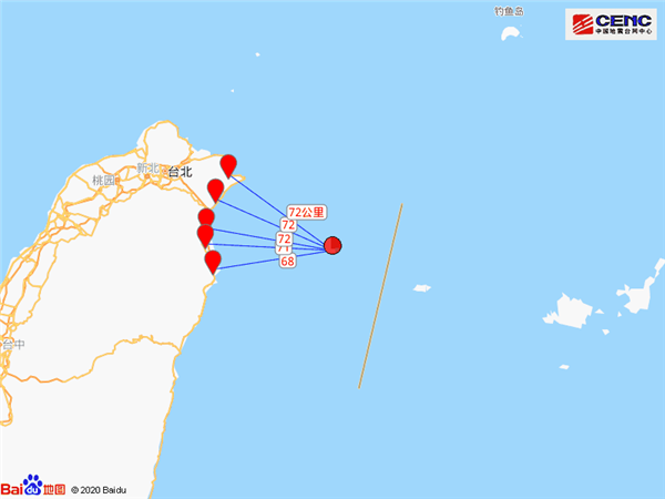 周邊縣城:震中距蘇澳鎮(zhèn)68公里、距五結(jié)鄉(xiāng)71公里、距壯圍鄉(xiāng)72公里、距頭城鎮(zhèn)72公里、距貢寮區(qū)72公里,距宜蘭縣76公里,距臺(tái)北市108公里。