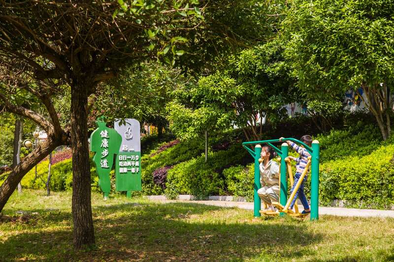 將樂縣常口村健康主題公園中,孩子們正在鍛煉身體。董觀生/攝
