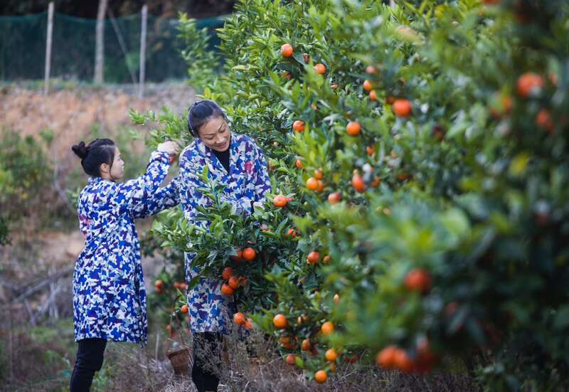 種植戶在將樂縣常口村臍橙種植基地中采收臍橙。董觀生/攝