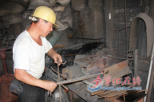??? “當(dāng)、當(dāng)、當(dāng)……”清脆的打鐵聲從寧化縣城關(guān)五星路一間低矮破舊的瓦房中傳出,一名中年男子正汗流浹背地翻打著鐵砧上的撬棍,火花四濺……