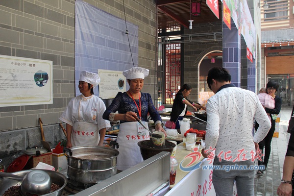 ??圖為張三金在寧化客家小吃節(jié)上賣擂茶