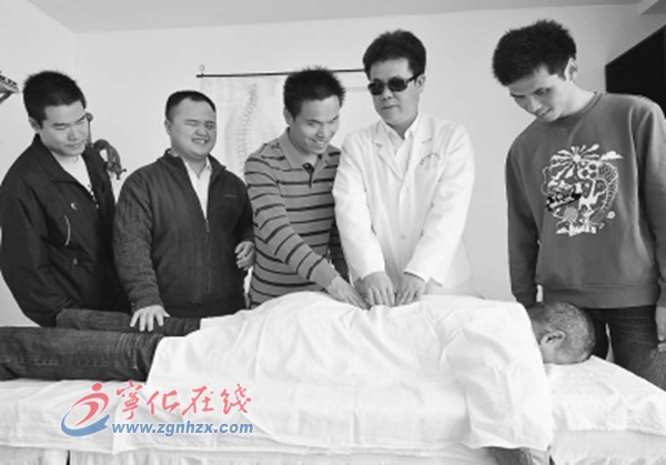 在福建省海峽盲人按摩指導(dǎo)中心,王永澄向新學(xué)員傳授按摩技術(shù)。(資料圖片 來源于福建日報)