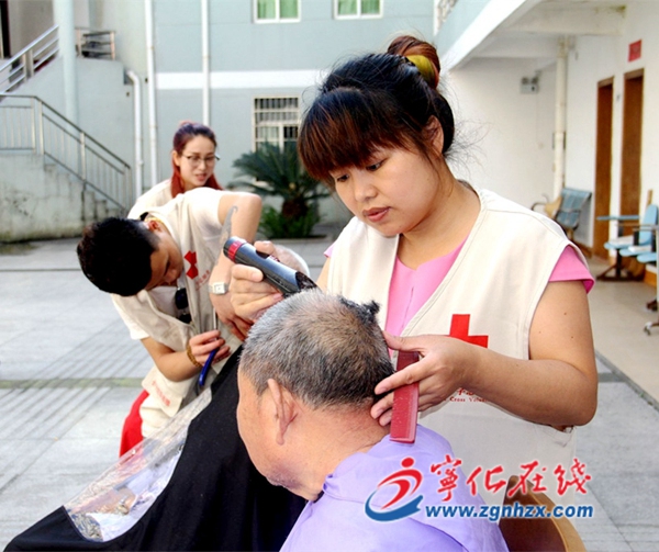 “孤寡老人手頭緊,經常會進理發店詢問價格,卻不舍得掏錢,讓我逐漸萌生了為他們免費理發的念頭?!痹缭谥驹阜贞牫闪⒅?,副隊長游斌就經常走進縣光榮院為老人義剪,一剪就是半天,直累得腰酸背痛?!叭硕嗔α看螅F在,服務隊不到兩小時就能幫光榮院里的老人理好頭發?!庇伪蟾锌馈j爢T周縣秀告訴記者,她曾開過理發店,雖然現在不再做理發師,但有這個技術能參加義剪,為老人做點力所能及的事,心里非常高興。城郊鄉敬老院離縣城約3公里,交通不便,志愿者邱蓉秀每次都會開著私家車載大家一起去,人手不夠時,她叫上同是理發師的丈夫一同前往義剪。志愿者張長才還動員好友李梅花、張林妹參加義剪活動,使得志愿服務隊越來越壯大。