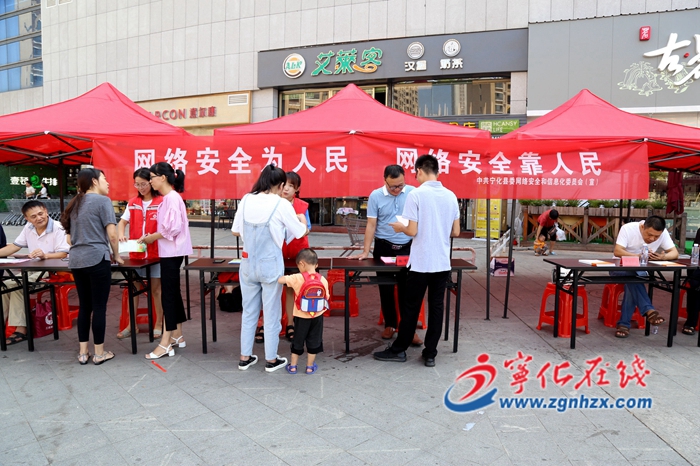 ? ? 網絡安全為人民,網絡安全靠人民。9月16日,寧化縣委宣傳部(網信辦)牽頭,協同縣教育局、公安局、團縣委、總工會、婦聯、人民銀行、移動、電信、聯通等單位,在城區萬星廣場開展寧化縣“2019年國家網絡安全宣傳周”首日活動。