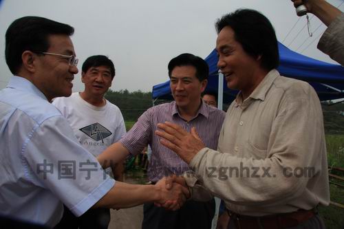 省委宣傳部副部長朱清與朱德扮演者王伍福親切握手