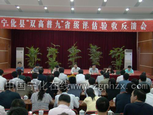 在反饋會(huì)上,省政府“雙高普九”評(píng)估驗(yàn)收組各項(xiàng)目評(píng)估組分別就各自評(píng)估情況進(jìn)行反饋,既肯定成績(jī),也指出不足,并提出整改意見(jiàn)。省政府教育督導(dǎo)室副主任謝友平代表省評(píng)估驗(yàn)收組作出總體評(píng)價(jià):寧化“雙高普九”工作,領(lǐng)導(dǎo)重視,認(rèn)識(shí)提高,氛圍濃厚,措施有力,整改到位,成績(jī)顯著。評(píng)估的32項(xiàng)指標(biāo)中,達(dá)標(biāo)的有26項(xiàng),基本達(dá)標(biāo)的6項(xiàng),未發(fā)現(xiàn)“一票否決”項(xiàng)目不達(dá)標(biāo)情況。同時(shí),認(rèn)為目前寧化教育工作,仍存在三個(gè)問(wèn)題:一是縣財(cái)政投入與教育發(fā)展需要仍有差距;二是農(nóng)村學(xué)校辦學(xué)條件仍然較弱;三是教師隊(duì)伍供需矛盾仍然突出。