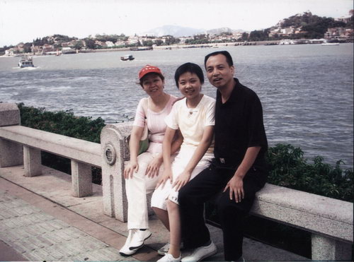 張莉和父母游覽鼓浪嶼,來個合影也不怕,你看,笑得多燦爛!