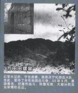 方田田螺髻,紅軍長征后,寧化縣委、縣蘇及寧化游擊大隊,在此堅持了半年的游擊斗爭,1935年5月,遭敵襲擊,經激烈戰斗,突圍無效,大部分同志光榮犧牲在此。