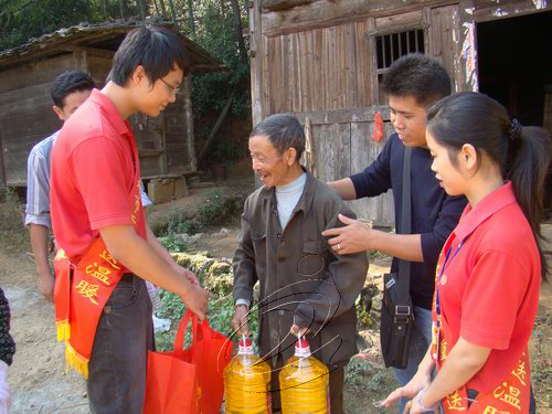 永輝超市員工與本網(wǎng)網(wǎng)友為貧困老人送食用油(張麗勍/攝)