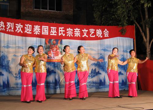 當晚,在巫羅俊懷念堂設宴歡迎泰國宗親,縣委常委、統戰部長何正彬出席晚宴并致歡迎詞。晚宴過后,還舉行了歡迎文藝晚會,縣夕陽紅藝術團表演了舞蹈《笑口常開》、快板《十杯美酒敬泰國宗親》等精彩節目。