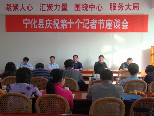 肩負神圣使命,履行社會責任。11月6日下午,寧化縣新聞中心和廣電局的新聞工作者歡聚一堂,以座談會的形式慶祝第十個記者節。縣委常委、宣傳部長廖金輝代表縣委、縣政府向全縣新聞工作者致以節日問候。他希望廣大新聞工作者以改革的精神,務實的作風,團結一致、開拓創新、扎實工作,為寧化新一輪又好又快發展、為實現建設“四地”這一新的戰略目標提供強大的輿論支持。