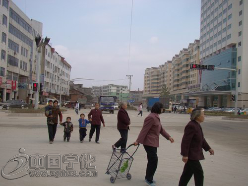 一位挑著擔(dān)的老大娘過馬路闖紅燈了,站在馬路中間進(jìn)也不是,退也不是。
