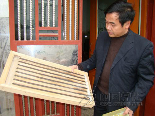 ????在農村,有一種全身長滿小孔的“米篩”,可以用來把大米里的雜物篩去,受這個啟發,伍亮輝找來兩塊跟育秧盤一樣大的木板,按照育秧盤洞穴的分布規律,在木板上扎下一個個小孔。操作時,將上下盤錯位疊放,然后將種子放在種槽內,稍稍傾斜,種子就會沿著播種溝順次滾入播種孔,這樣,煙籽就能順著小孔均勻地落到育秧盤里。由于避免了手與胞衣種子的接觸,減少了病蟲害傳播的途徑,使煙苗的成活率大大提高。