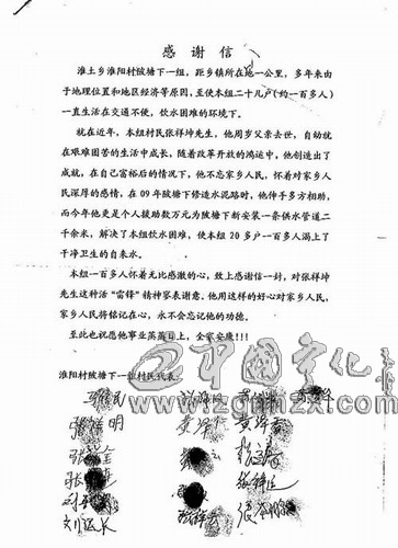 張祥坤捐資引水 村民聯名感謝