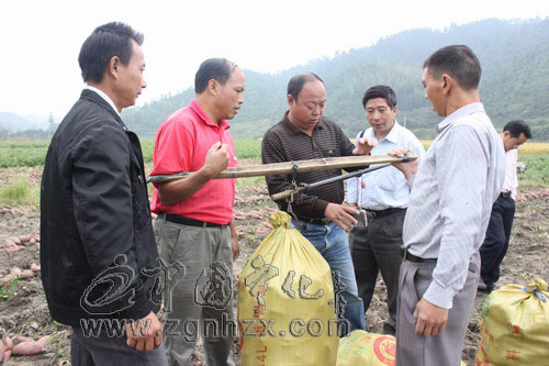 在現場可看到薯塊普遍突出壟頂,挖出后擺滿了整個壟頂。過往群眾紛紛駐足觀看,對高產甘薯的表現表示吃驚。今年71歲的安遠鄉黃塘村村民陳賢伴聽說今天測產驗收,早早就來到了驗收現場,他秤了一株寧薯10號甘薯足足有7斤多,高興地對記者說,明年他也要試種5畝。張坊村村民張榮宗高興地告訴記者,種甘薯比種水稻省時省力,肥料也用得少,他家今年種的5畝泉薯10號,按合同價0.8元/公斤計算,保守估計畝產值達2600多元,明年還要種更多。