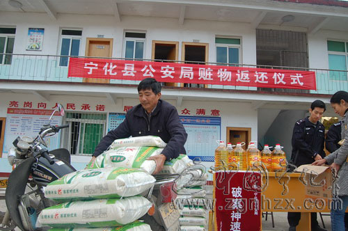 10月27日下午,寧化縣公安局在局機(jī)關(guān)大院內(nèi)舉行“贓物返還儀式”,將日前破獲的系列入室盜竊、盜竊摩托車案件中所收繳的價(jià)值5萬元臟物返還給失主。