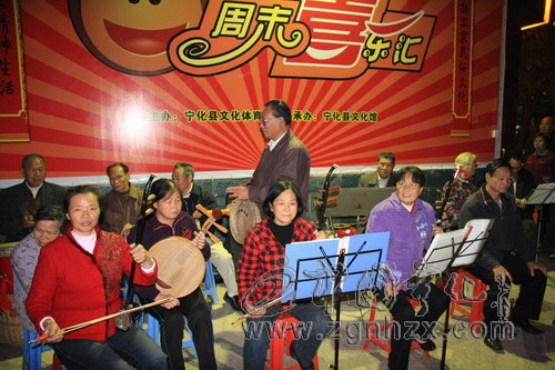 演出在縣文體局局長連新福簡短的祝詞中拉開序幕。縣業余曲藝團表演了傳統樂器合奏《萬年歡,瓜子仁》,充滿異域特色的《廣東歡樂鑼鼓》、《廣東山歌》、《江西采茶戲選段》,民間小調《十杯酒》、《南調》,還表演了具有濃郁客家特色的清唱《客家山歌》,祁劇《大堂別》、《打金枝》等選段。演出在《歡樂鑼鼓》中結束。整場演出充分展現了客家文化特色,雖然沒有絢麗的舞臺背景、沒有耀眼的明星陣容,演出的主角也都是老百姓自己,但這絲毫沒有影響大家的熱情。演出現場常常歡歌笑語、高潮迭起。