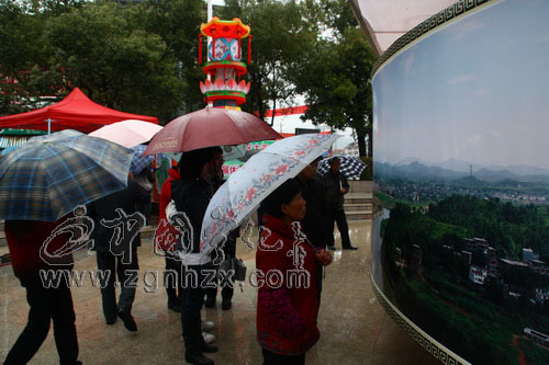 廣場中心5米多的主燈下部,是一個360度環形的巨幅畫卷,展示了寧化城區圖景。市民們邊看邊議。