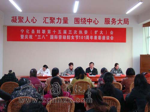 ?? 2月25日,寧化縣婦聯(lián)第十五屆三次執(zhí)委擴(kuò)大會議暨慶祝“三八”國際勞動婦女節(jié)101周年表彰座談會在縣委三樓會議室召開。會議傳達(dá)了省、市婦聯(lián)執(zhí)委擴(kuò)大會議精神,部署了今年全縣婦女工作,并表彰了安遠(yuǎn)鄉(xiāng)等一批婦女工作先進(jìn)單位。縣委常委、宣傳部長廖金輝出席會議并講話。