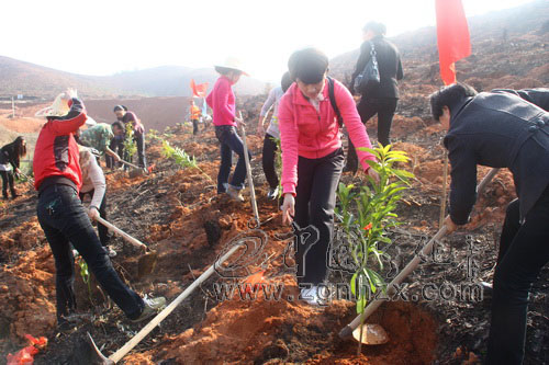 ??? 漫山的“半邊天”拉開架勢,鋤鎬上下?lián)]舞;縣直機關(guān)的婦女代表們干得歡;農(nóng)業(yè)系統(tǒng)的代表很認真,每種一棵樹,合不合規(guī)格,都要請林業(yè)局的技術(shù)員檢查一番;交通系統(tǒng)的女職工穿著整齊的黃色衣裝,話語不多,手下的活卻干得不賴;供電系統(tǒng)、中國寧化在線網(wǎng)友……各系統(tǒng)的婦女代表們爭先恐后,各不相讓。伴隨著歡聲笑語不絕,一株株光皮樹、陽光山礬樹苗被栽下,荒山開始變得生機勃勃。