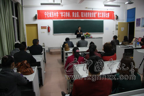 ????? 3月31日晚,寧化縣城東中學在校內(nèi)舉行以“學習李彬、黃金蓮,我為教育做貢獻”主題的教師演講比賽。該校60余名教職工到場聽講。