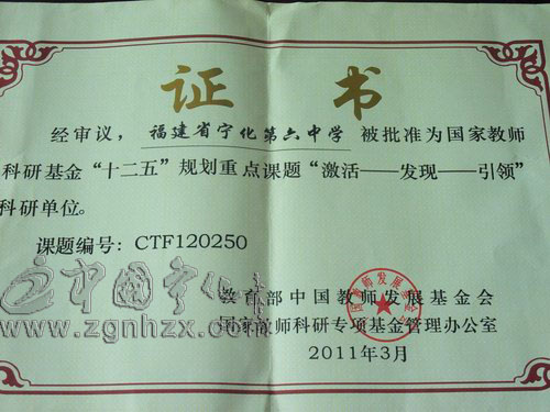 該課題為寧化縣第六中學校本課題,由寧化六中語文教研組長,福建省中小學中青年學科帶頭人