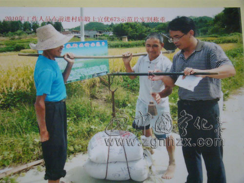 ???? “只有業務精通,才能工作過硬”,是曾仁杰的行為準則。為了探索河龍貢米新品種的抗逆性、適應性和產量表現,為河龍貢米新品種在全縣大面積推廣提供大田實驗依據, 2009年該鄉展示宜優673、宜優115等26個新品種,2010年展示NT1、NT2等25個新品種。曾仁杰非常重視這項展示工作,“為了詳細記載水稻莖蘗數動態情況,每隔3天我都要早上4點多起床去田間,一蹲就是3、4個小時。”水稻品種展示是一種系統、復雜、連貫性強,工作量大而且持續時間長(120—160天左右)的試驗,特別是水稻莖蘗數動態記載,從水稻移栽直至最高莖蘗數止(一般為30左右天)。曾仁杰告訴記者,工作量更大的是水稻理論產量測定室內考種數穗粒,一個樣品要花上8、9個小時。“我是農民的兒子,學的又是農學,為了河龍貢米,我再苦再累都值。”